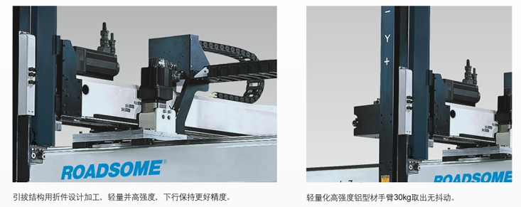 高強(qiáng)度內(nèi)藏式結(jié)構(gòu)手臂,高精密抖動小。 模組化零件組,保持零件一致性及長期精度, 模外部可配合非標(biāo)設(shè)備及模外剪切等多功能動作, 增加第4軸,模外產(chǎn)品旋轉(zhuǎn)剪切。 進(jìn)口臺達(dá)系統(tǒng)及馬達(dá),保持高速運轉(zhuǎn)及穩(wěn)定運行。 簡約的結(jié)構(gòu)設(shè)計,保養(yǎng)方便,零件更換更省時。